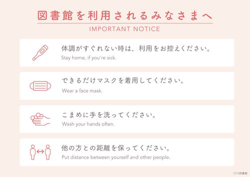 以下のサイトで配布されていたrimbird様(@rimbird)作のアイコンを使ってポスターを作りたいなと思い、図書館入館前の注意書き的なポスターを作ってみました。 coliss.com ポスター素材の公開 上記の画像と同じものをGoogleスライドで作ってテンプレートとし…